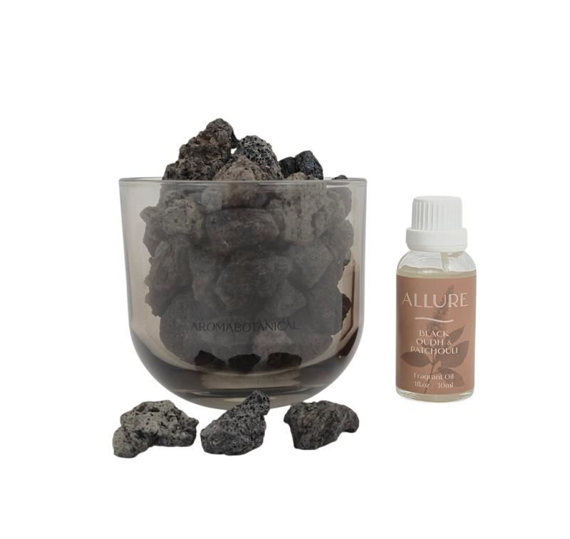 Описание Арома сет с камнями Allure lava stone Черный уд и пачули серый 30мл