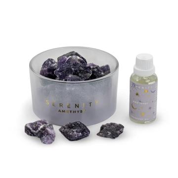 Описание Арома сет Стеклянная чаша с кристаллами Аметиста и аромамаслом Лаванда и клементин