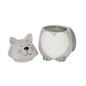 Описание Банка для сипучік сіра Котик з серцем 13см