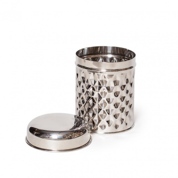 Желаете справиться с порядком на кухне в новой манере? Банка для сыпучих «Чеканка» - верный помощник хозяюшки на все времена. Стальной бокс хранит, как положено, муку, сахар, соль и различные крупы. В плотно закрытой емкости нет шансов для неприятных сюрпризов. Сырость и непрошенные насекомые останутся плохими воспоминаниями. Банка из нержавеющей стали имеет право украсить внешний вид кухни. Оригинальная чеканка и современный дизайн придают интерьеру нарядность. Стальные банки для кофе, чая, сахара и сыпучих идеально сгруппировать в один комплект. Фабричное производство Индии гарантирует безопасность материала. Легкий металл обладает практичными достоинствами в ежедневном быту. Возьмите под свой контроль порядок на кухне. Сделайте запас ингредиентов в закрытых банках для сыпучих. Храните верность комфорту во всех деталях.