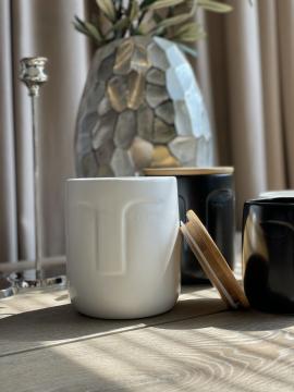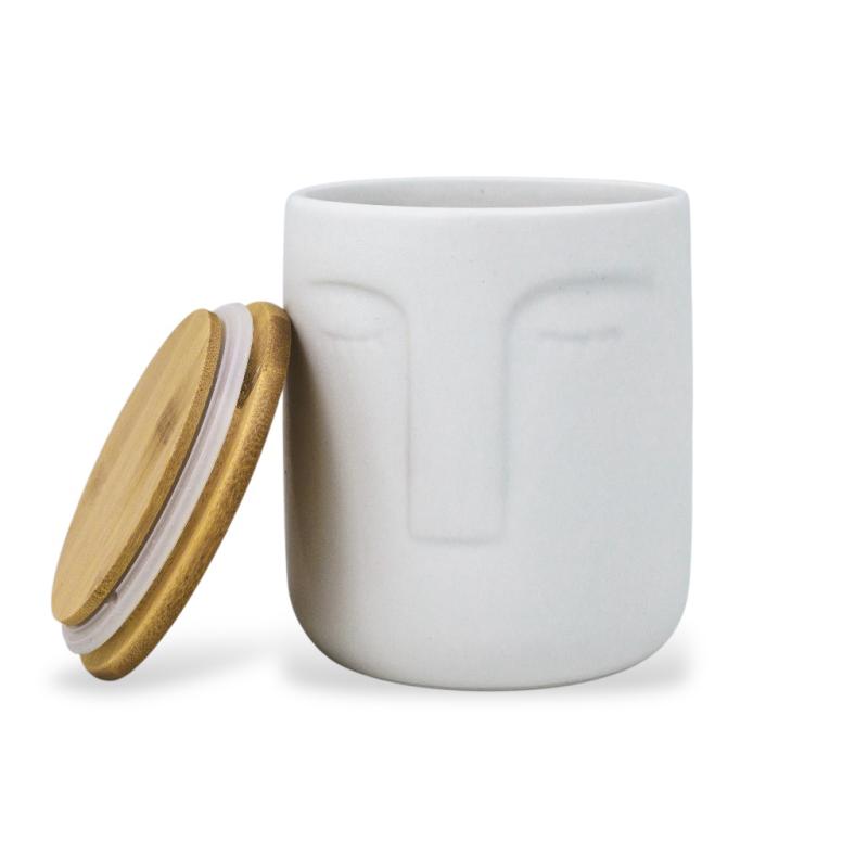 Банка для сыпучих с бамбуковой крышкой FACE белая 10.5Х10.4Х12.5