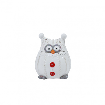 Описание Банка для сыпучих совушка с пуговками белая 12.5см