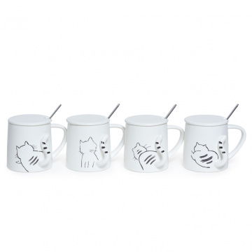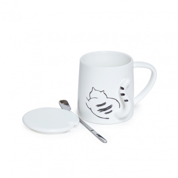 Описание Белая чашка Кошачий хвостик с крышкой и ложкой 320мл 4в