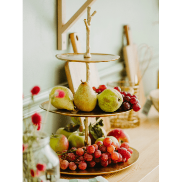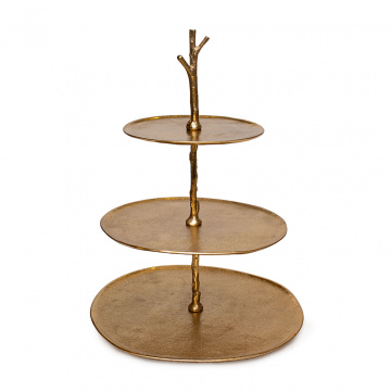 Чаепитие с закусками и десертами имеет свои особенности. Уместно предложить гостям на выбор бутерброды, закуски и сладкие изделия. Металлическое блюдо с тремя ярусами не загромождает стол лишней посудой. Аксессуар, наполненный ассорти вкусностей, выглядит эффектно на праздничном столе. Первый ярус предназначен для небольших бутербродов и сэндвичей. На втором этаже выложите булочки, кексы, варенье или джем. На верхушке блюда подаются кусочки торта, конфеты, пирожные. Блюдо из латуни индийского производства высокого качества. Металл обладает практичными и антикоррозийными свойствами. Выводите сервировку стола на уровень английского чаепития. Располагайте гостей теплой атмосферой и красивой подачей десертов. С трех ярусным блюдом получится угодить леди и джентльменам.