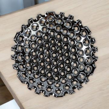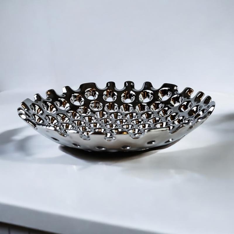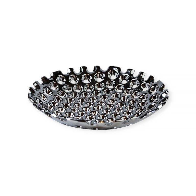 Керамическое блюдо «Сота» – роскошный штрих к вашей сервировке. Стильное блюдо «Сота» с эффектным серебристым оттенком станет не только функциональным элементом сервировки, но и выразительным акцентом вашего интерьера. Необычная форма, вдохновлённая природной структурой пчелиных сот, придает блюду уникальность и шарм.