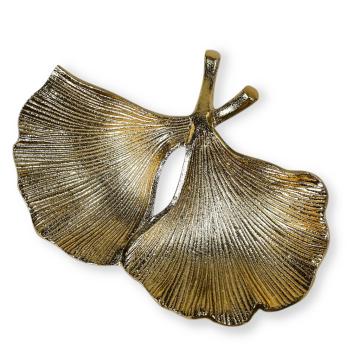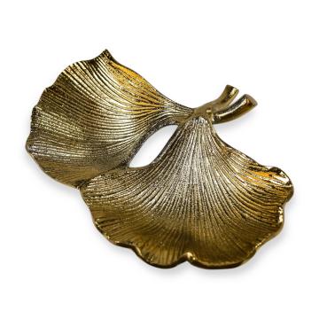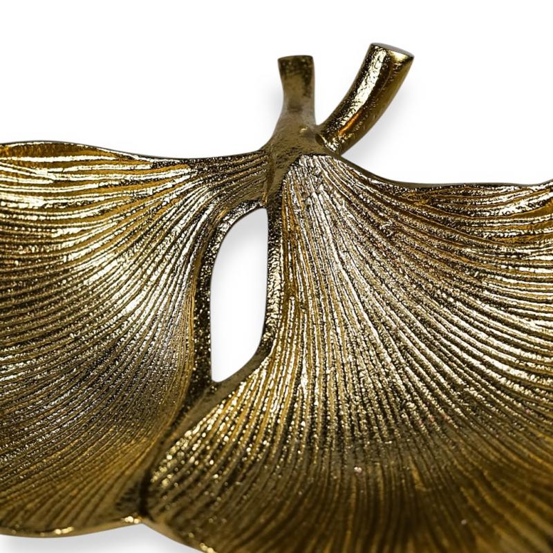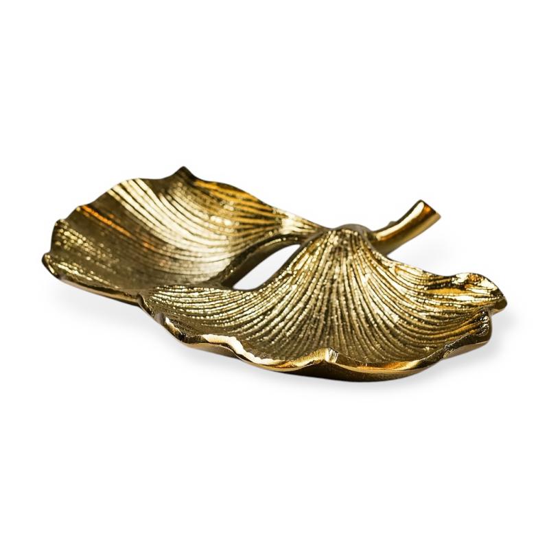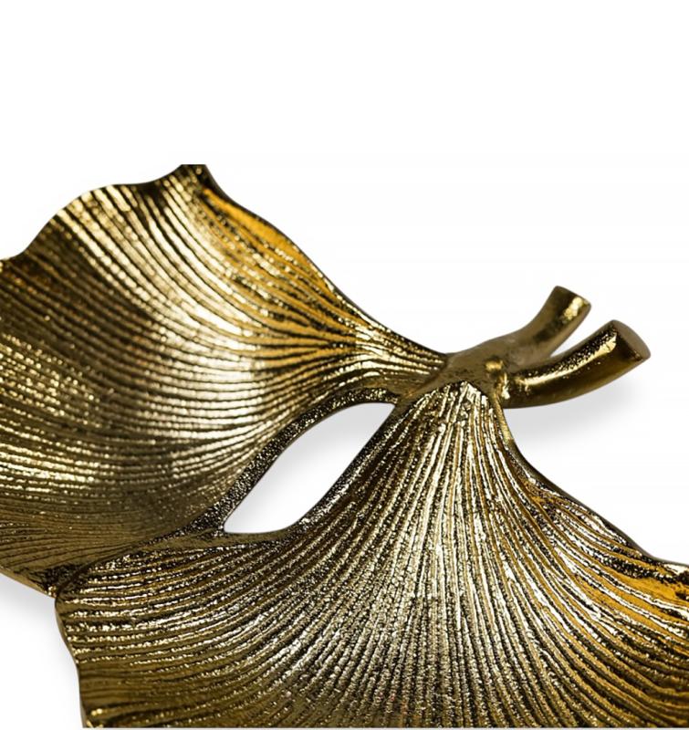 "Golden Vein" — это воплощение природной пластики и изысканного блеска. Алюминиевое блюдо, выполненное в виде двух листьев, словно соткано из света и вдохновения. Его мягкий золотой оттенок играет на свету, а утончённая форма с плавными линиями и филигранной текстурой делает каждый изгиб блюда предметом восхищения.