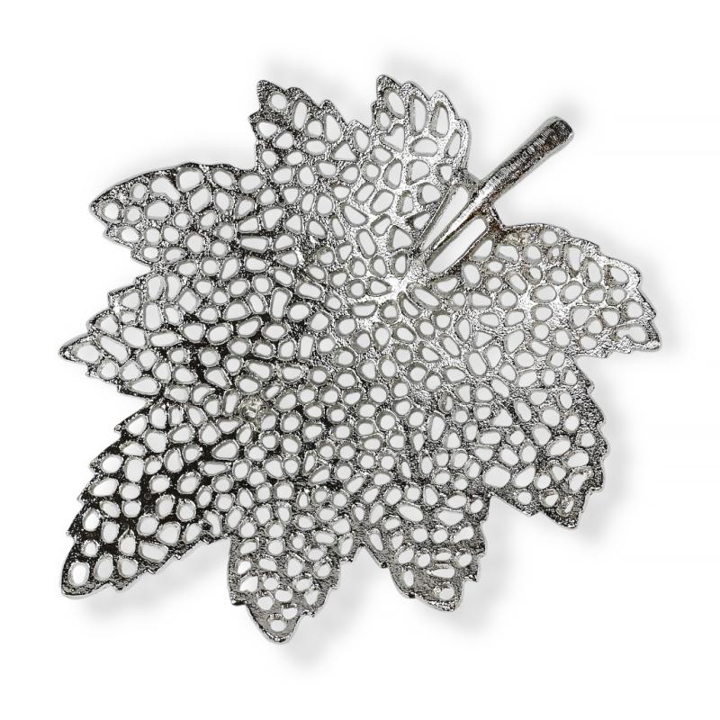 Погрузитесь в мир природной гармонии с изящным блюдом из коллекции Leaf Line. Это не просто алюминиевое блюдо — это воплощение лёгкости, утончённости и дизайнерского вкуса. Выполненное из прочного металла в благородном серебристом цвете, блюдо привлекает внимание своей креативной формой — стилизованным кленовым листом с ажурной текстурой, напоминающей лёгкое кружево природы.