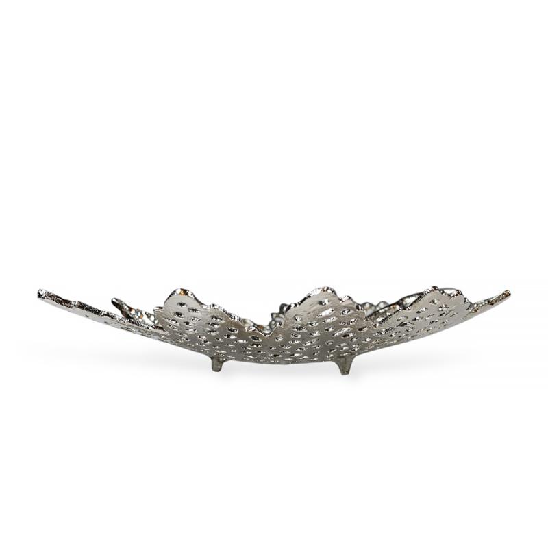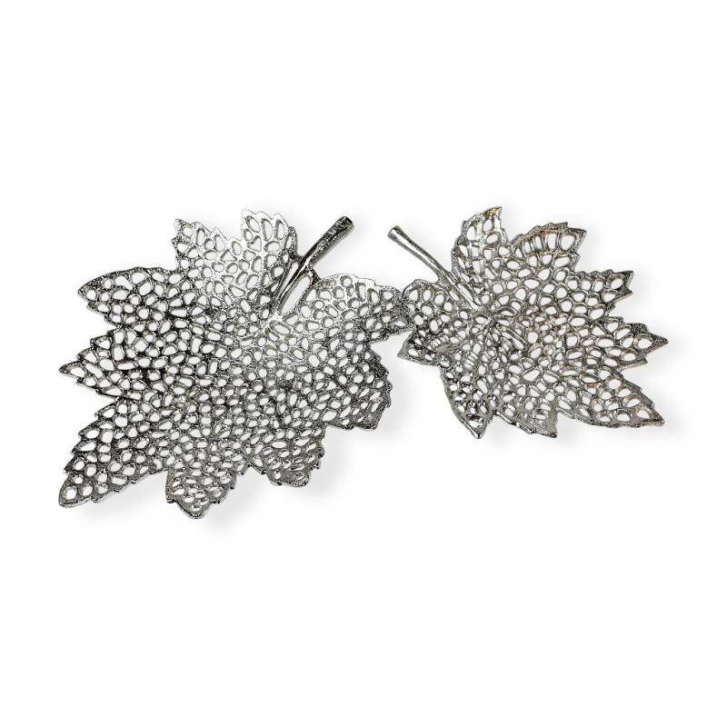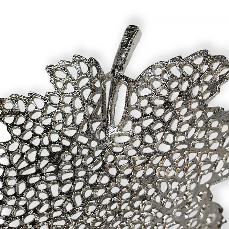 Погрузитесь в мир природной гармонии с изящным блюдом из коллекции Leaf Line. Это не просто алюминиевое блюдо — это воплощение лёгкости, утончённости и дизайнерского вкуса. Выполненное из прочного металла в благородном серебристом цвете, блюдо привлекает внимание своей креативной формой — стилизованным кленовым листом с ажурной текстурой, напоминающей лёгкое кружево природы.