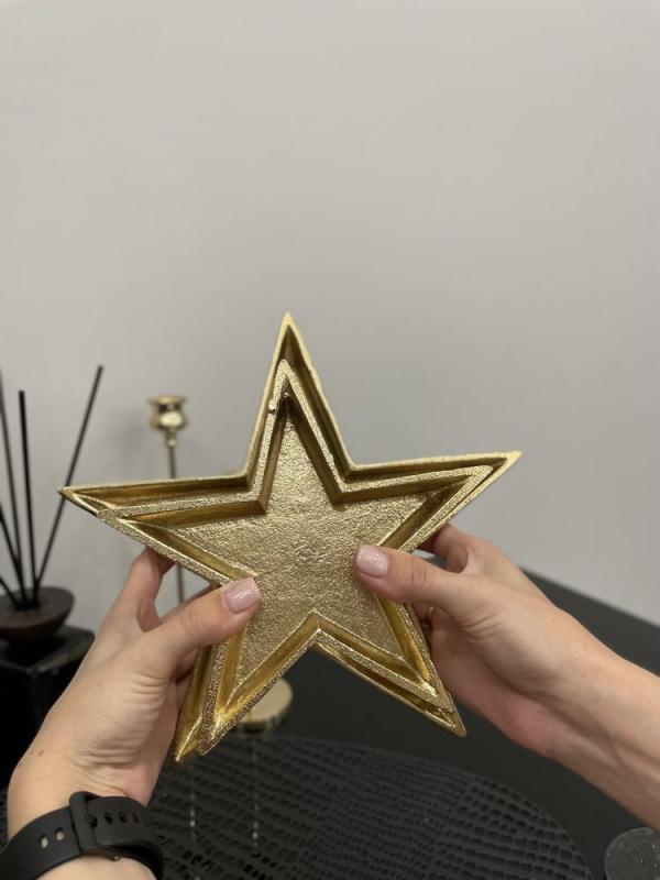 Блюдо на ножке «Звезда» - праздничный вариант посуды и декора одновременно. Нарядное изделие выглядит красочно и нарядно в период рождественских праздников. Золотая звезда на ножке символизирует тепло семейных традиций и домашний уют. На блюде с высокими бортиками красиво оформите праздничные закуски, десерты, выпечку, конфеты, фрукты.