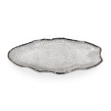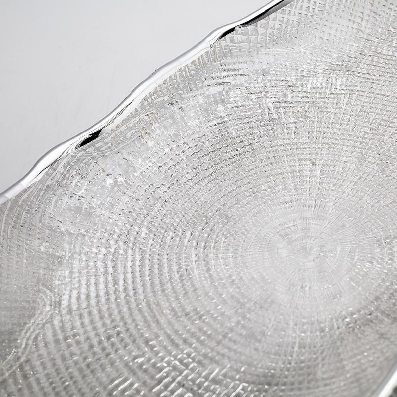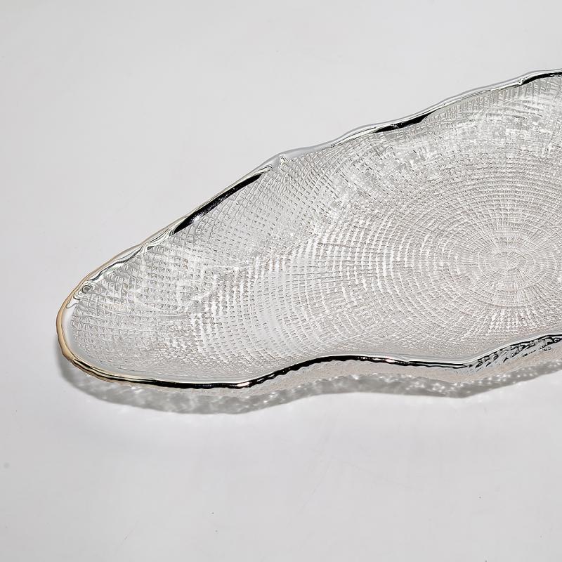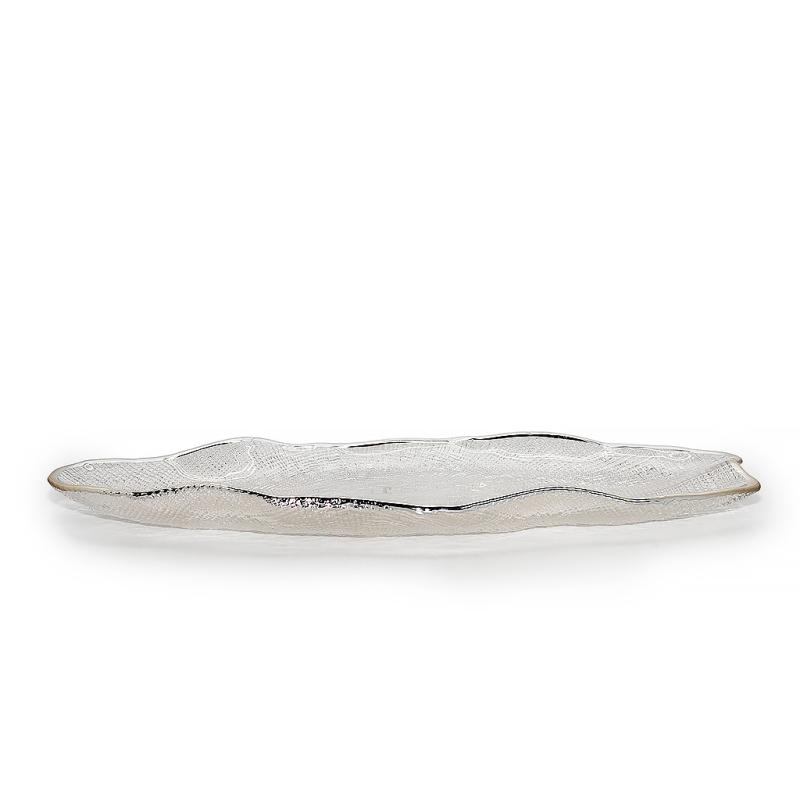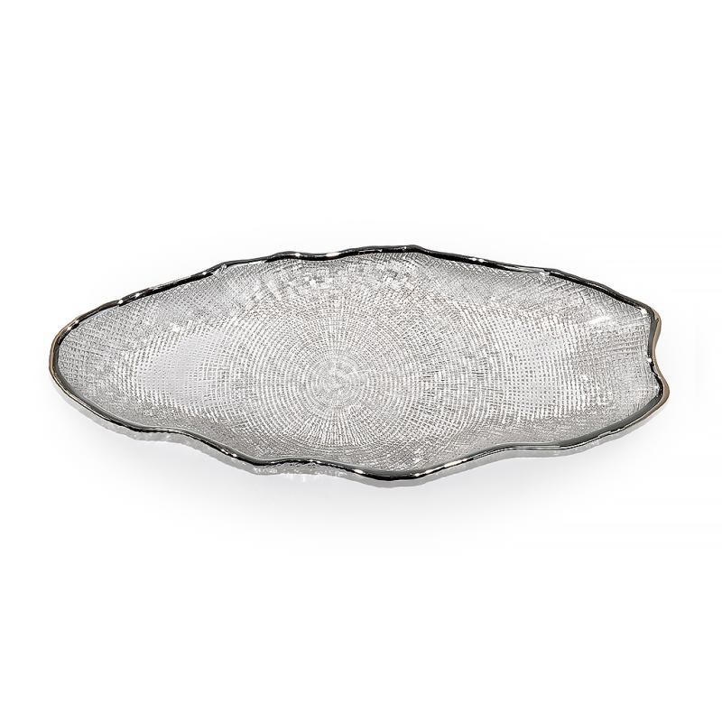 Стеклянное блюдо Stone — эффектная стеклянная посуда для красивой сервировки и подачи. Прозрачное блюдо из стекла привлекает внимание асимметричной формой, выразительным рельефом и аккуратной серебристой окантовкой. Благодаря сочетанию прозрачного стекла и блеска серебристого края сервировочное блюдо смотрится легко, нарядно и современно.