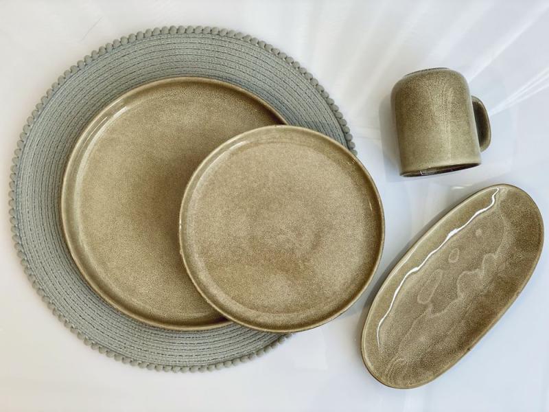 Описание Тарелка овальная Stoneware reacive glaze бежевое 12х26см