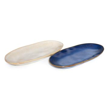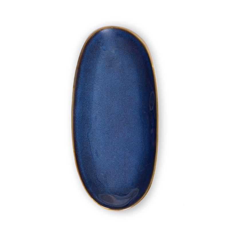 Описание Тарелка овальная Stoneware reacive glaze синяя 12х26см