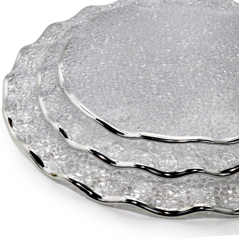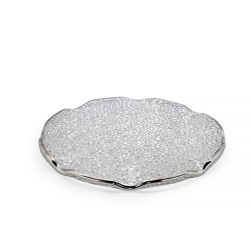 Стеклянное блюдо Shell — изящная стеклянная посуда для сервировки, в которой сочетаются прозрачное стекло, фактурная поверхность и аккуратная серебристая окантовка. Рельеф красиво отражает свет, добавляет подаче объем и делает сервировочное блюдо особенно выразительным, легким и современным.