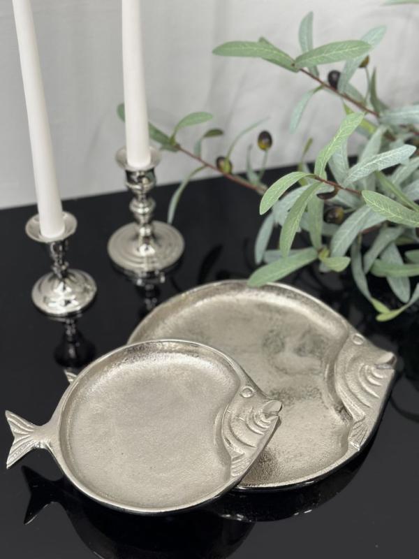 Металлическое блюдо Рыба представлено в двух размерах, что позволяет гибко адаптировать его под любую сервировку. Гладкая металлическая поверхность эффектно отражает свет, добавляя блеск вашему столу, а уникальный дизайн превращает каждое блюдо в настоящий кулинарный шедевр.