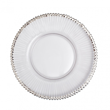 Не рекомендуется мыть в посудомоечной машине, или с использованием абразивных средств. Не использовать в микроволновой печи Когда угощения поданы на красивой посуде, атмосфера за столом звучит особенной тональностью. Прозрачное блюдо с серебряной каемкой окажет заметное влияние на праздничную сервировку. Тарелка из прочного рельефного стекла представляет собой качественное изделие. На прозрачном блюде эффектно подавать холодные закуски или салаты. Элегантно и торжественно выделяется каемка с серебряным напылением. Используйте блюдо вместо подтарельника, чтобы зубчики тарелки украшали сервировку. Виртуозно смотрится посуда в комплекте с тарелкой меньшего диаметра. Коллекция стеклянной посуды подобрана по модным тенденциям последних сезонов. В ассортименте блюда и тарелки оригинальных расцветок: абрикосовые, голубые и прозрачные с золотой окантовкой. Пригласите на званый ужин родных и близких. Напитайте атмосферу праздника уютом и красотой. Пусть на каждом блюде с серебряной каемкой окажется изысканный деликате