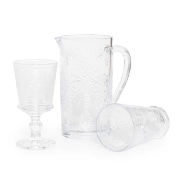 Уникальность этого бокала заключается в его дизайне "Шмель". Рельефное изображение пчелы на поверхности бокала придает ему особый шарм и привлекательность. Бокал выполнен в одном стиле с графином и стаканом.