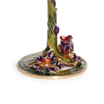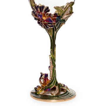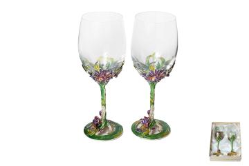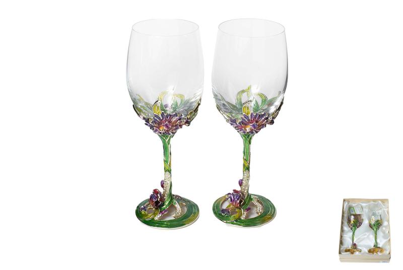 Высота бокала: 20 см - Объем 300 мл.Если вы трепетный поклонник вина, бокалы «Ирис» послужат вам качеством и удивительной красотой. Приблизиться к совершенному вкусу коллекционного напитка достаточно комфортно. Продуманная форма бокала помогает раскрыть все тайны аромата вина. Чувственное наслаждение дарят стиль и богатая фактура бокалов.Декоративный дизайн ириса выполнен с педантичной аккуратностью. Все элементы цветка изготовлены вручную из сплава металла на оловянной основе. Художник кропотливо расписывал каждую деталь орнамента. Многослойная эмаль передает роскошную палитру цветущего ириса. Эффектное украшение для интерьера и праздничной обстановки задаст тон общему настроению. Элегантное мерцание страз Swarovski на ножке бокалов добавляет тонкий шарм изделию.Бокалы винные «Ирис » заботливо упакованы, словно ювелирные украшение, в изящную подарочную коробку.Бокалы винные «Ирис» обрадуют ваших родных и близких во время торжественных мероприятий. А вручив такой комплект в подарок вызовете восторг