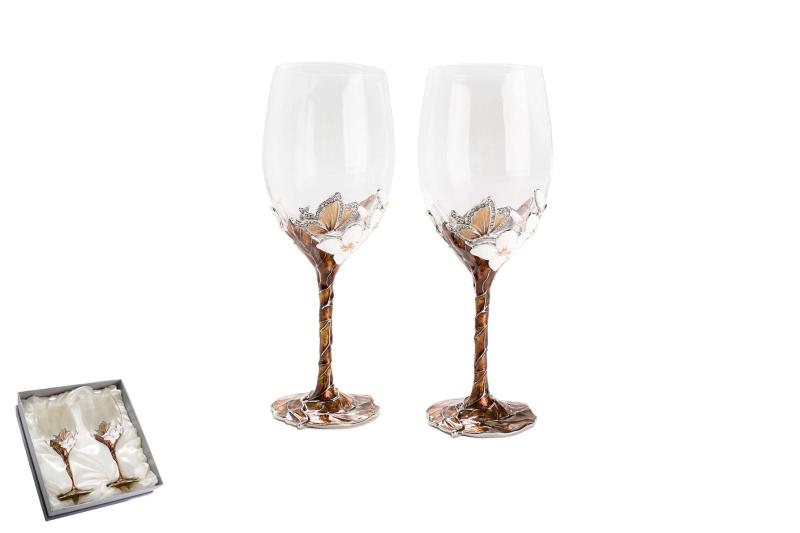 Бокалы винные Ирис дикий 2 шт. Материал: хрусталь, цветная эмаль, инкрустация камнями Swarowski. Высота бокала: 21 см - Объем 350 мл.