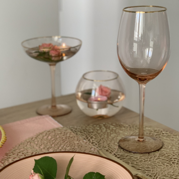 Винный бокал с золотым ободком магически меняет настроение. Засияет лицо гостя улыбкой после первого глотка из фужера. Бокал с огранкой «широкого плиссе» выглядит нарядно для праздничных мероприятий. Презентуйте в стакане необычное вино и коктейли с яркими ингредиентами. Винный бокал подчеркивает статус праздников: свадьбы, юбилея, коктейльной вечеринки.