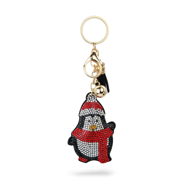 Фигурка пингвина, украшенная сияющими стразами и дополненная колпачком и шарфом, смотрится стильно и поднимает настроение. Брелок удобно крепится к ключам, сумке или рюкзаку, превращая повседневную вещь в эффектный акцент.