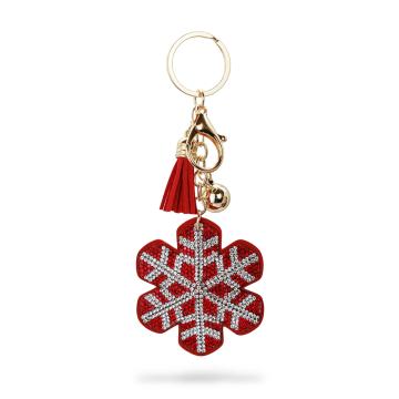 Эффектная снежинка, усыпанная переливающимися стразами, дарит ощущение свежести зимы и праздничного волшебства. Дополнительные детали — золотистая фурнитура, декоративная кисточка и колокольчик — делают брелок не только стильным, но и по-настоящему нарядным.