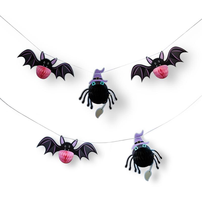 Описание Бумажная гирлянда Паук в шляпе и летучая мышь 3м