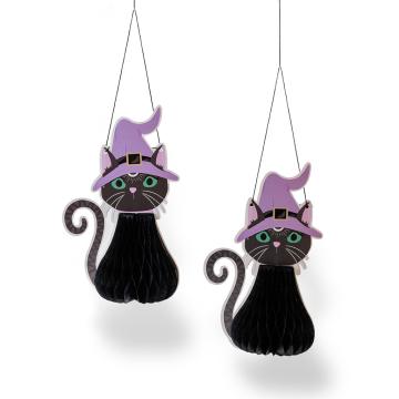 Такой декор станет отличным решением для вечеринки, фотозоны, витрины или украшения дома. Коты можно подвесить на окна, потолок или в дверной проём — и они сразу добавят атмосферы волшебства и лёгкой мистики.