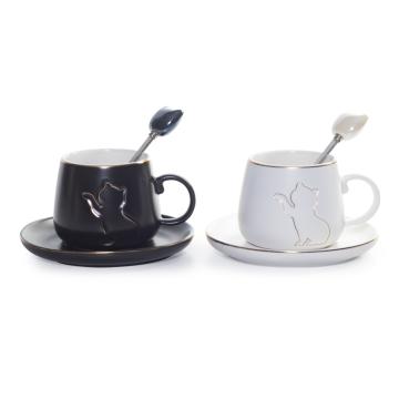 Описание Чашка Cилуэт котика с блюдцем и ложкой 150 мл 2 вида
