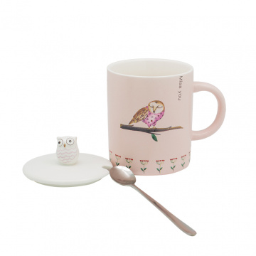 Описание Чашка керамич с крышкой Весна Сова, 4 вида
