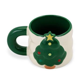 Чашка керамическая «Ёлка / Санта» словно кусочек зимней сказки у вас в руках. Объёмные рельефные фигурки на чашке — зелёная ёлка со звёздочкой и добродушное лицо Санты — создают праздничное настроение и добавляют уюта каждому глотку. Тёплый кремовый фон подчёркивает яркие акценты, а контрастные ручки делают кружку не только удобной, но и добавляют изюминку. С новогодней чашкой утренний кофе, вечерний чай или горячий шоколад превращаются в маленький новогодний ритуал.