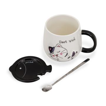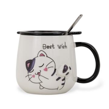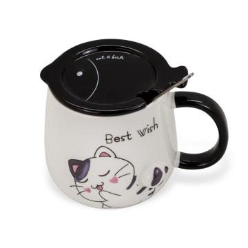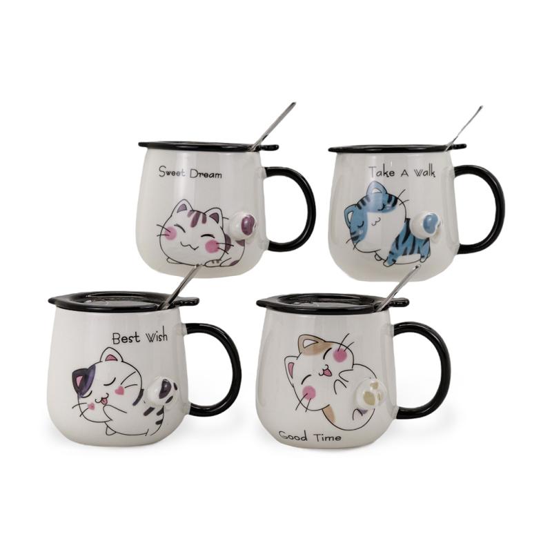 Описание Чашка керамическая с ложкой и крышкой Котята 4 вида 400 мл
