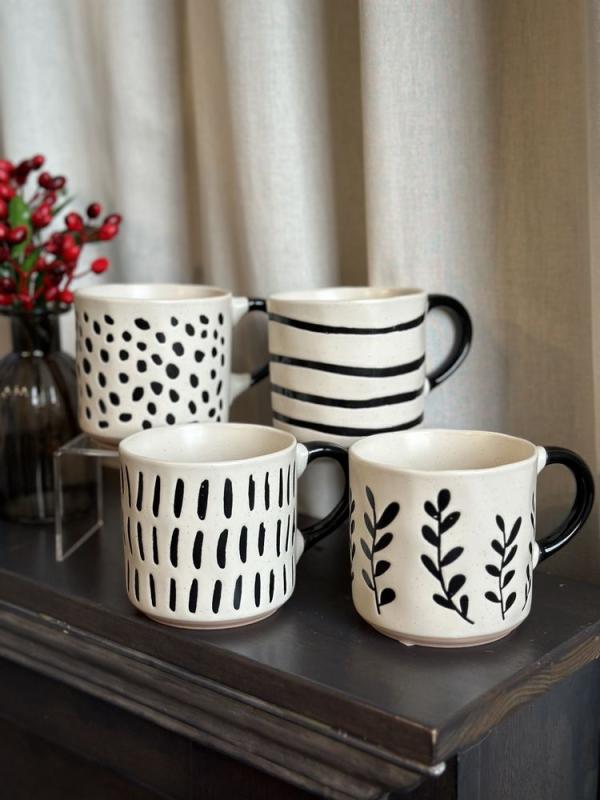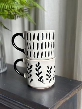 Керамическая чашка с абстрактным рисунком веточек - идеальный выбор для тех, кто ценит красоту и функциональность. Она изготовлена из качественной керамики, которая не только прочна, но и приятна на ощупь. Чашка имеет кремовый цвет, который прекрасно сочетается с черным рисунком веточек. Ручка чашки также черная, что придает ей элегантный вид.