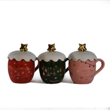 Описание Чашка Новогодняя с крышкой и ложкой со звездой 3 вида