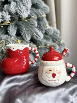 Наименование: Чашка Веселый Санта с крышкой и ложкой 400 мл