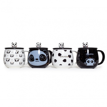 Описание Чашка "Панда" с ложечкой и крышкой 4 вида
