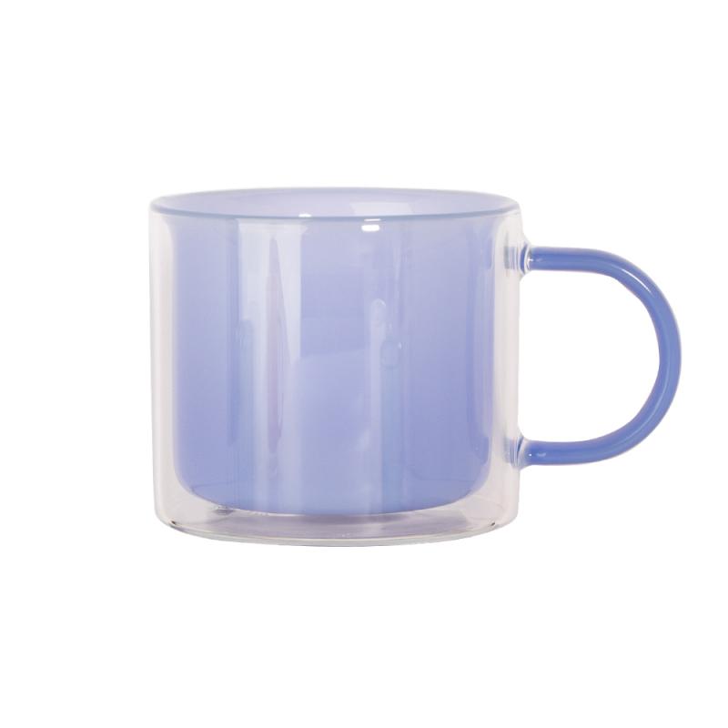 Ищете практичную и стильную чашку? Обратите внимание на модель нежно синего оттенка с двойной стенкой и объемом 260 мл. Двойная стенка позволяет наслаждаться горячим напитком, не опасаясь обжечь руки. Внешняя стенка из прозрачного стекла, внутренняя стенка чашки с синим оттенком. Чашка выглядит очень необычно и стильно!