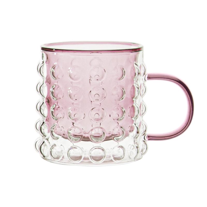 Чашка “Пузырьки ”имеет интересный рельефный узор на стенках, что не только делает её уникальной, но и обеспечивает удобный захват. Благодаря двойным стенкам можно наслаждаться горячим напитком, не опасаясь обжечь руки. Прозрачные розовые стенки чашки позволяют насладиться видом напитка. Чашку можно мыть в посудомоечной машине.