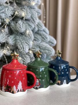 Описание Чашка Снежный Город с крышкой и ложкой 350мл 3вида