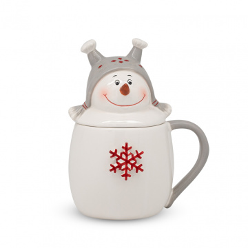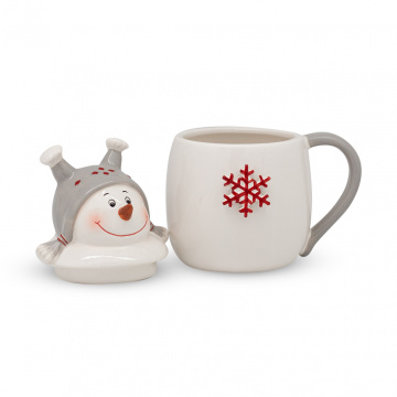 Описание Чашка с крышкой Снеговик бело-серый 13,5 х 10,5 х 16 см