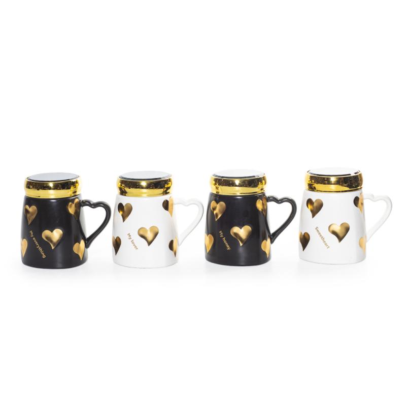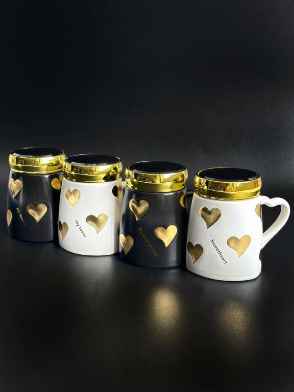 Описание Чашка Сердца золотые с зеркальной крышкой 400 мл 4 вида