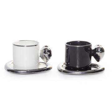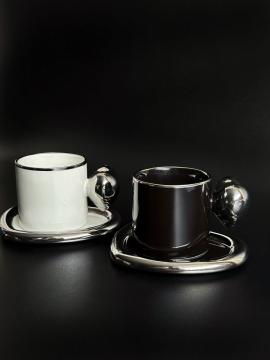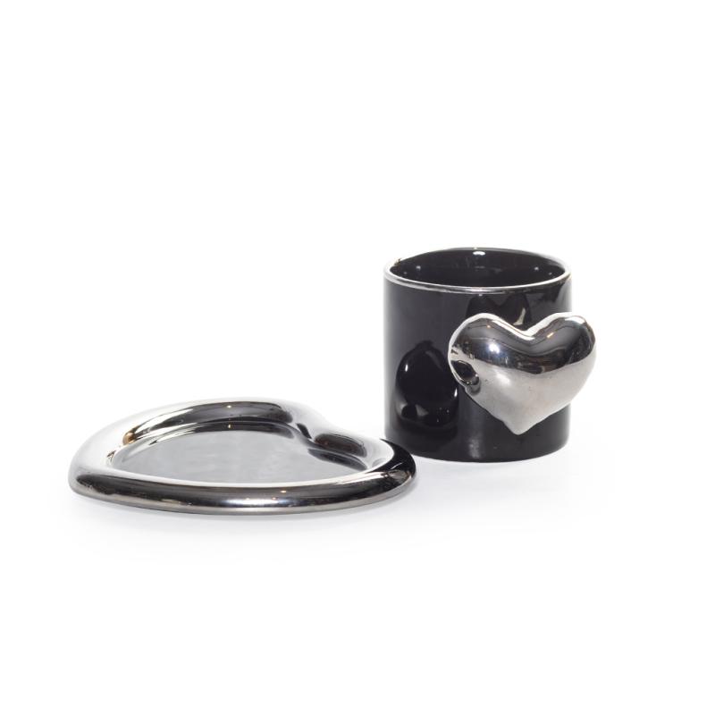Дополнительно: Серебряная ручка в виде объемного сердца, блюдце в форме сердца, серебристая кайма блюдец и чашек