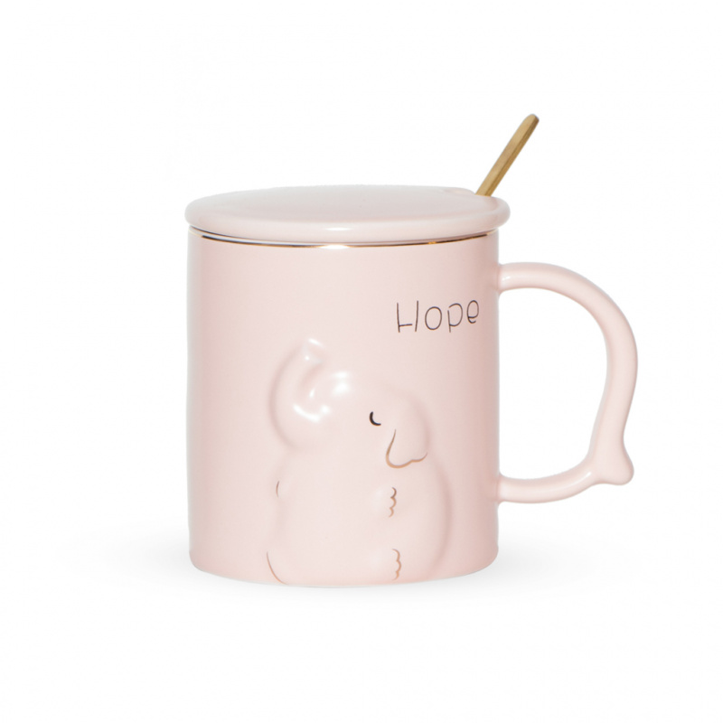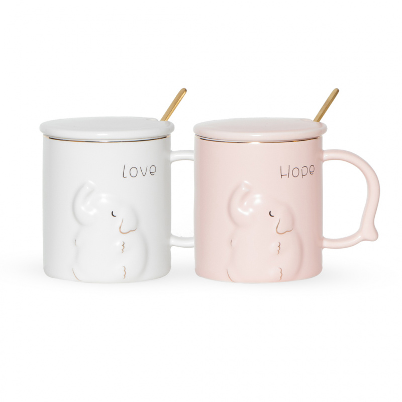 Описание Чашка Слоник с крышкой и ложкой 350мл 2 вида