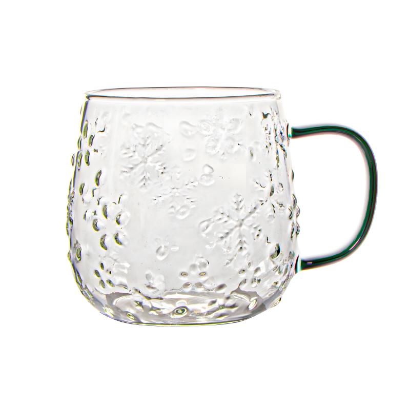Описание Чашка Снежинки с зеленой ручкой 500мл