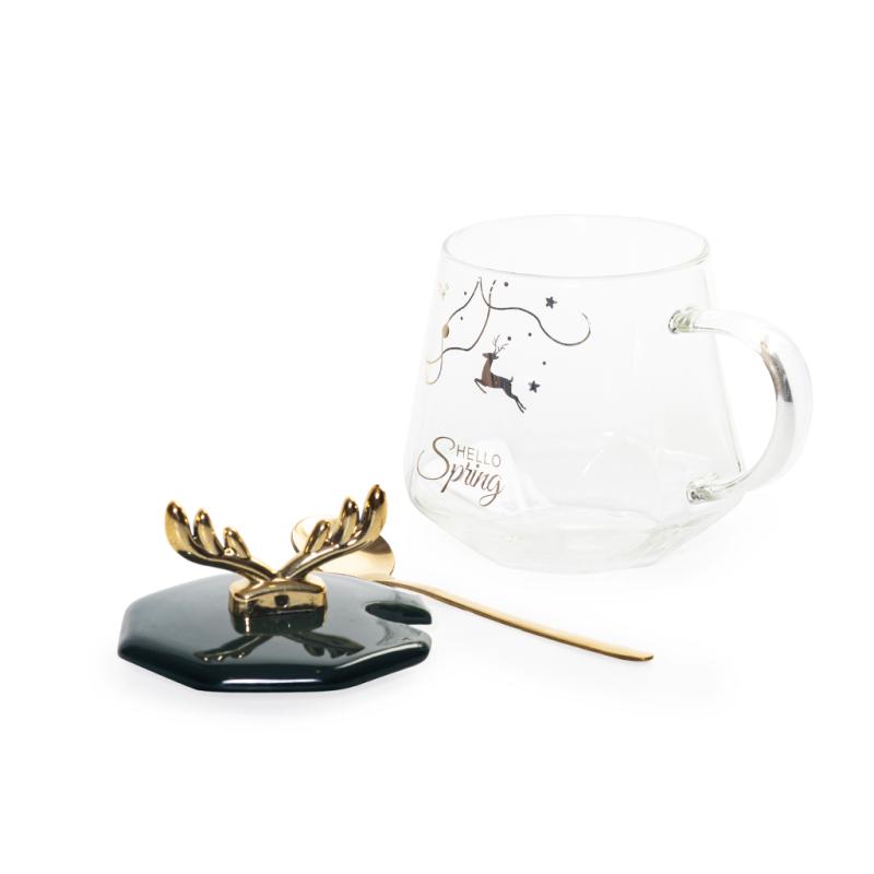 Наименование: Чашка стеклянная Hello Spring с крышкой и ложкой 400 мл
