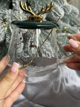 Необычная форма, прозрачное стекло, рисунок золотистой фигурки оленя создают неповторимый стиль.