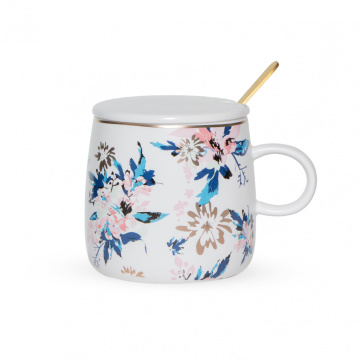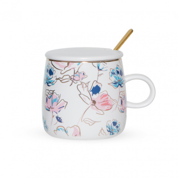 Описание Чашка Цветы с крышкой и ложкой 4 вида 400 мл