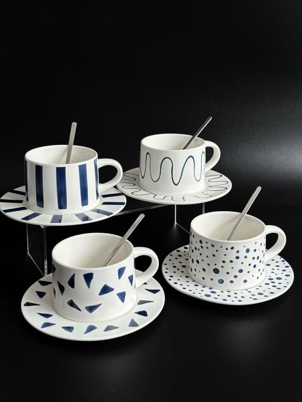 Описание Чашка Геометрия с блюдцем и ложечкой 220 мл 4 вида