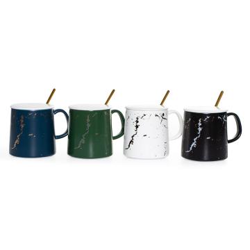 Чашка с крышкой и ложкой Мрамор 360мл 4 вида