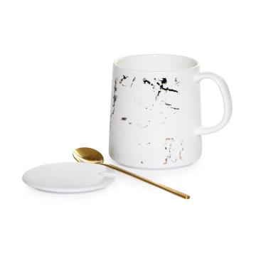 Чтобы день начался действительно правильно, нужна красивая посуда под рукой. Чашка «Мрамор» - уникальный взгляд на дизайн и комфорт. Мраморная расцветка с позолотой выглядит оживленно на столе кухни, офиса, гостиной. Объемная чашка с крышкой и ложкой практична для подачи кофе, чая, какао, молока.