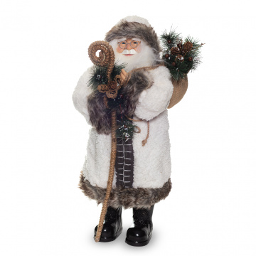 Описание Санта Клаус в белой шубе с посохом 80х38х30 см